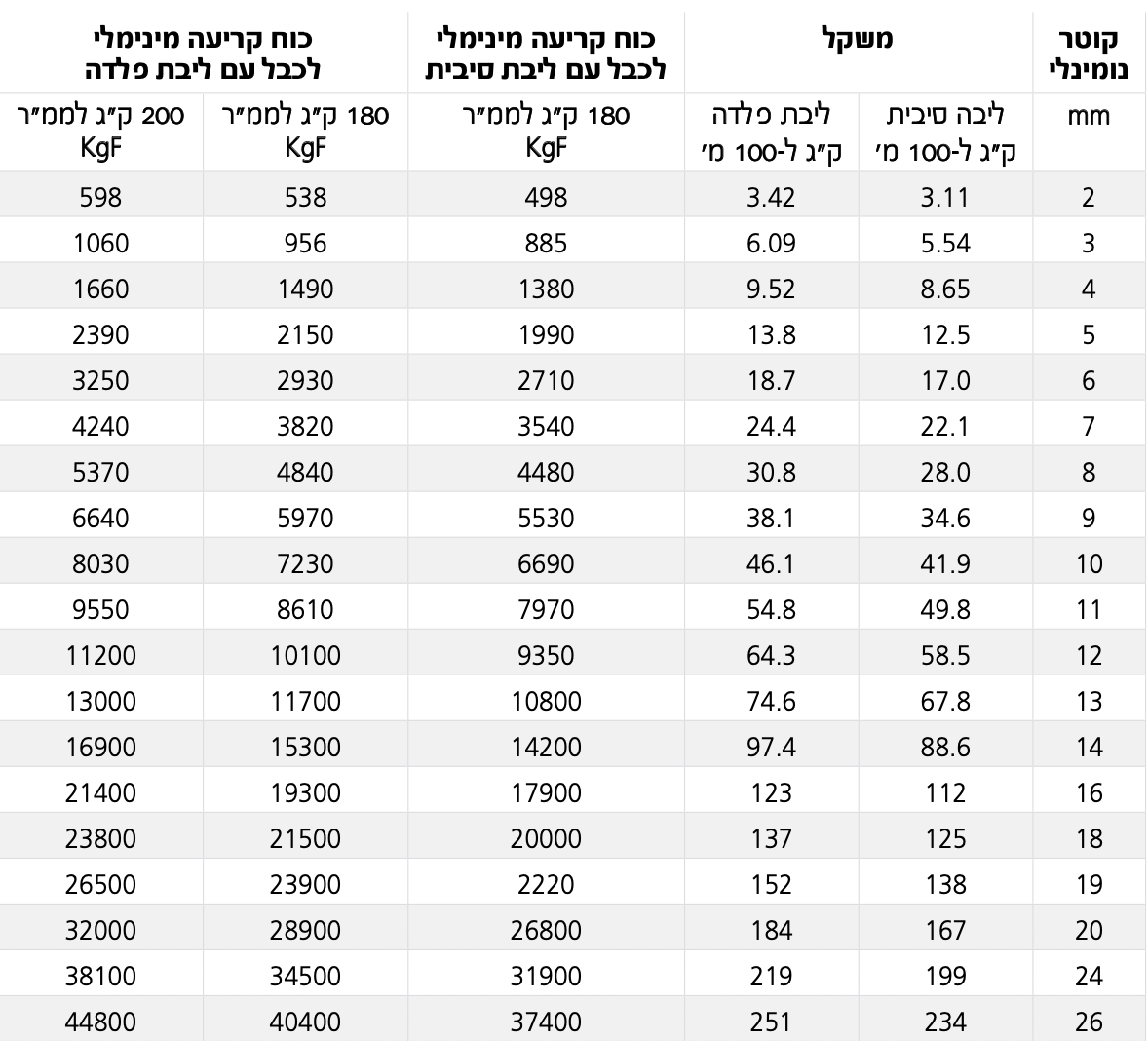 / כבל פלדה במבנה 6X19 ליבה סיבית / ליבת פלדה